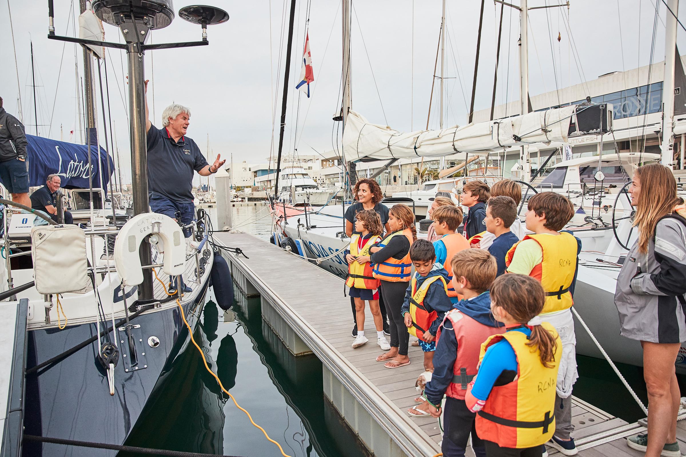 Future offshore sailors visit Marina Lanzarote and look around some of the boats in the race © James Mitchell